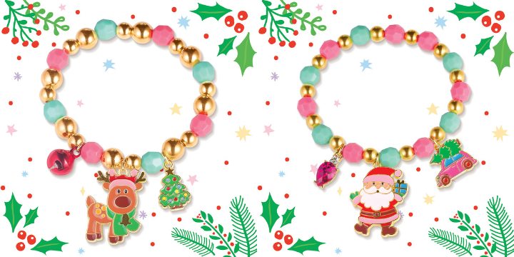 Add a little sparkle to her season with our Limited Edition Holiday Bracelets—the perfect festive accessory for kids! Choose from two joyful designs: the Jingle Bell Christmas Charming Whimsy Bracelet, featuring colorful beads with reindeer, Christmas tree, and jingle bell charms, or the Christmas Cheer Bracelet, bursting with holiday magic. These playful children’s holiday bracelets are a fun way to celebrate the season, whether she’s dressing up for a Christmas party, Hanukkah gathering, or Kwanzaa celebration. Pair them with her favorite Holiday Studs or Clip-On Earrings for a merry and bright look she’ll love to wear all winter long!
